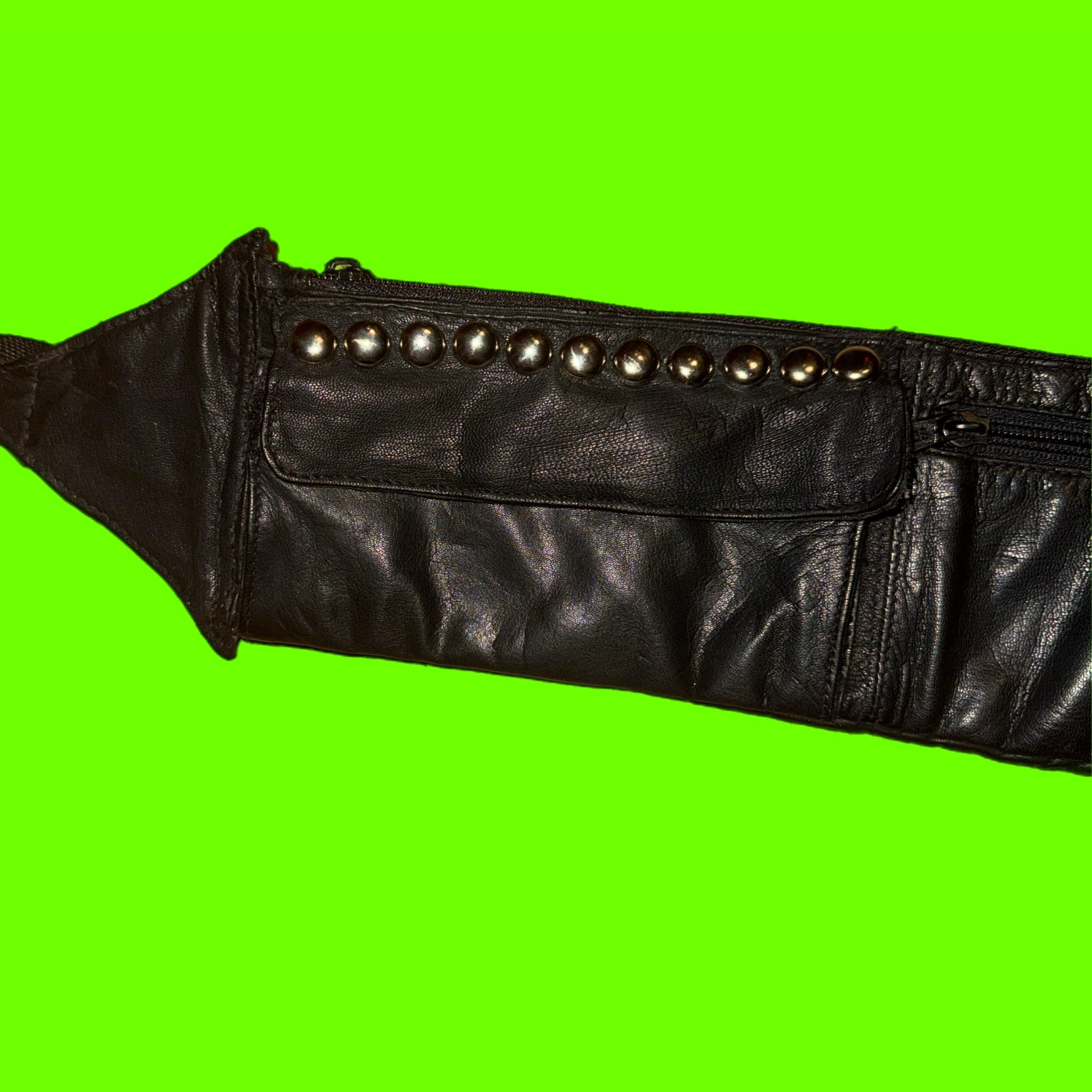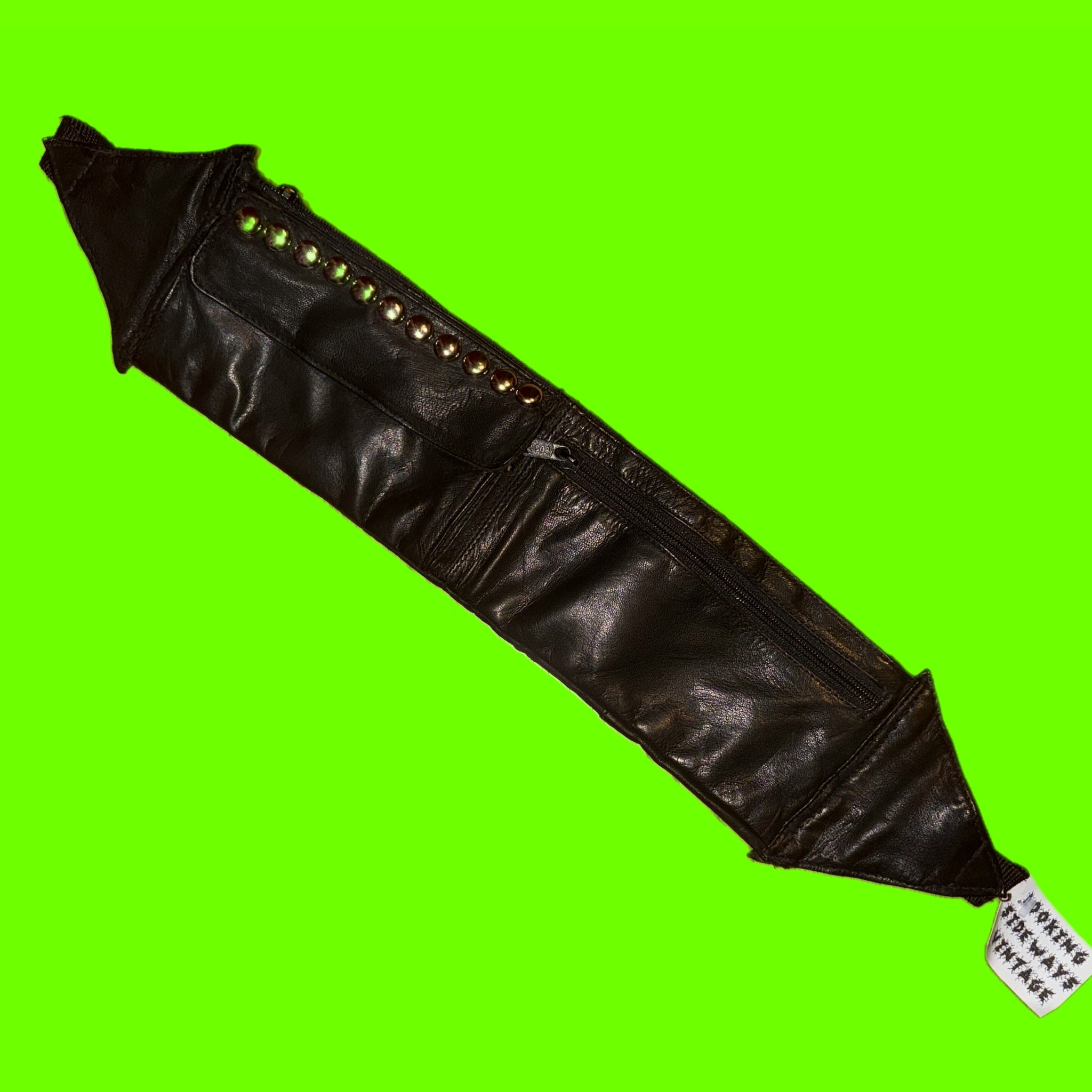 Interesting leather bag. Meant to be a shoulder bag you wear on your chest. Perfect for a day trip or a night on the town!